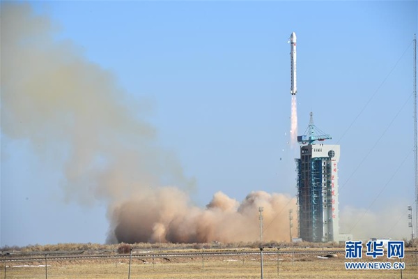 2018年1月13日15時10分,我國在酒泉衛(wèi)星發(fā)射中心用長征二號丁運載火箭,成功將陸地勘查衛(wèi)星三號發(fā)射升空,衛(wèi)星進(jìn)入預(yù)定軌道。新華社發(fā)(汪江波 攝)
