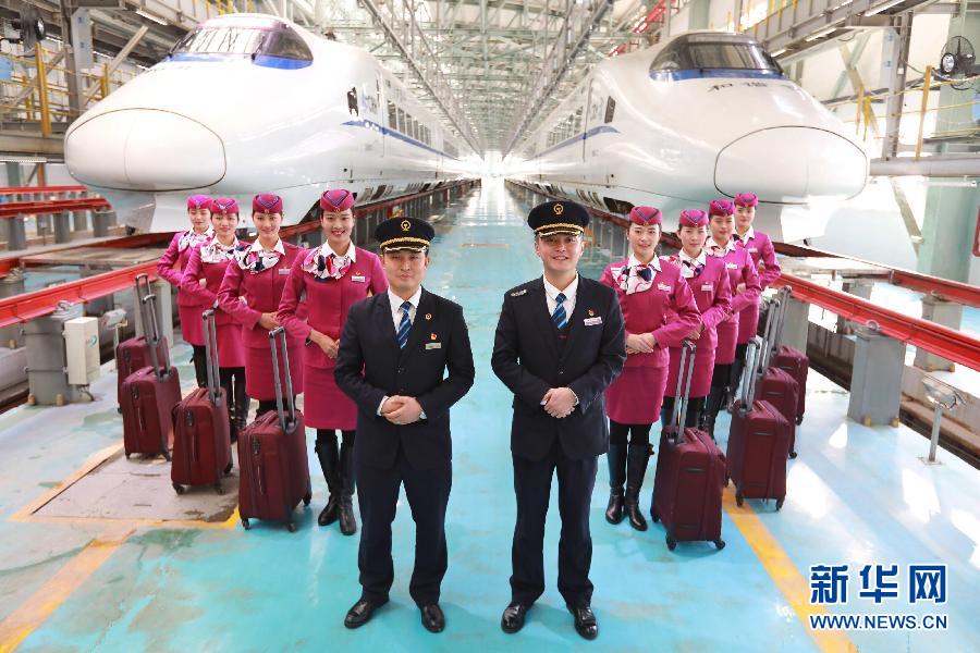 1月16日,擔(dān)任渝貴鐵路貴陽地區(qū)首發(fā)列車值乘工作的司機(jī)、乘務(wù)員、乘警等在貴陽亮相。新華社記者劉續(xù)攝