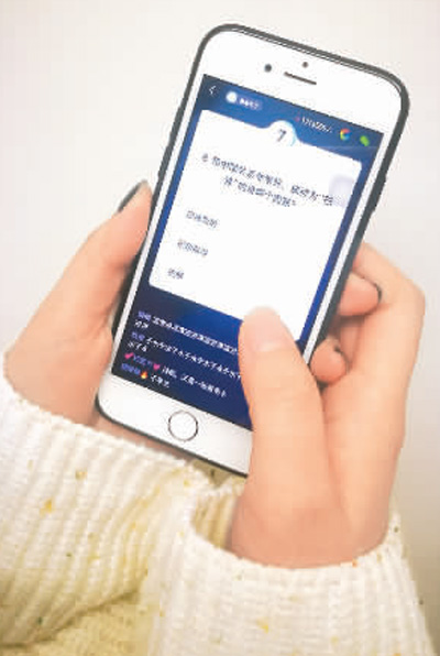 “人民日?qǐng)?bào)海外版?zhèn)b客島的作者一般自稱為島叔和什么?”“當(dāng)然是島妹??!”伴隨著手機(jī)屏幕上緊張的10秒倒計(jì)時(shí),武漢的蔡家欣迅速地點(diǎn)擊了正確答案。她的微信群里,一起答題的小伙伴們都在一邊緊張地答題,一邊熱烈地討論著。