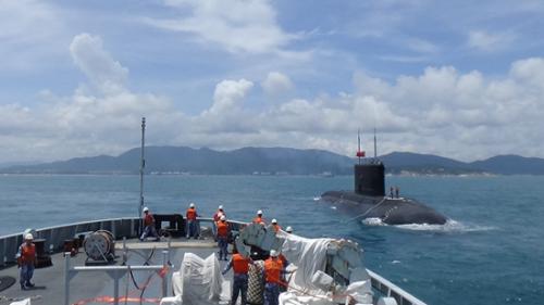 “潛艇拖帶也是一門技術(shù)難度十分大的工作,要在風(fēng)向、海浪等諸多因素中找到拖帶平衡點(diǎn)。”王文聰支隊(duì)長(zhǎng)介紹說,海上拖帶,平時(shí)也是支隊(duì)重點(diǎn)訓(xùn)練的一項(xiàng)內(nèi)容。演練現(xiàn)場(chǎng),某型拖船船長(zhǎng)曹鵬小心翼翼,根據(jù)風(fēng)向和海浪,適時(shí)調(diào)整拖船航向航速,拖帶著“失事潛艇”向預(yù)定海域行駛。