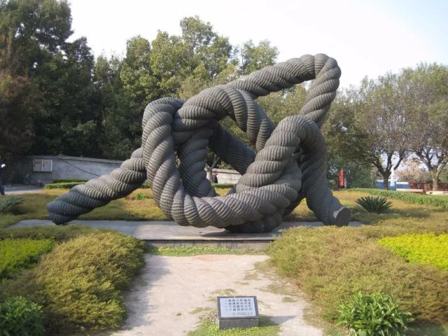 雕塑前一塊石碑上刻著4句話:“一根粗大的繩索,一段曲折的歷史,一個覺醒的過程,一個崛起的時代?!彼囆g(shù)家的設(shè)計和4句注釋,寓意深刻,發(fā)人深思。