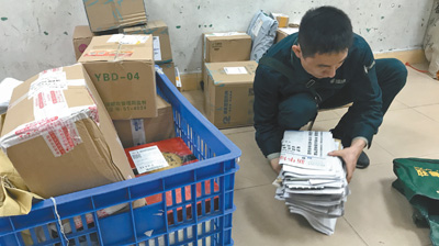 春節(jié)將至,又到了萬家團圓的日子。但環(huán)市西路投遞部有許多像羅金城一樣的年輕人,并沒有回家的打算。投遞部主任黃大兵表示:“每年過節(jié)前夕,都是我們業(yè)務(wù)最忙的時候,平時一天3000多件,現(xiàn)在要增加一倍多。”
