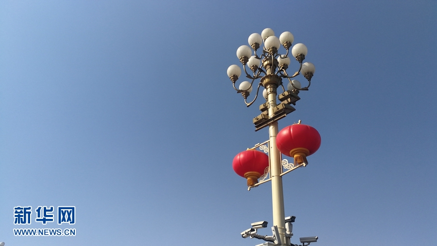 2018年2月15日,天安門廣場(chǎng)外的燈柱用紅燈籠裝飾一新,喜迎農(nóng)歷新年。紅色代表著喜慶、熱鬧、祥和,是中國人最為崇尚的吉祥之色。新年來臨,中國紅無處不在,到處都洋溢著喜氣洋洋的節(jié)日氣氛。新華網(wǎng) 張明宇攝