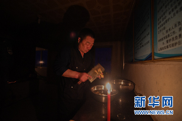 燭光搖曳,白玉華一一清洗凍白菜、土豆和鮮肉,這是他年夜飯的所有食材。這幾天喝水成了問題,用的水是他從20公里之外的河溝中鑿取的冰塊。兩天前,站上的柴油發(fā)電機(jī)壞了,不能抽取井水。大雪封山,車行困難,機(jī)器無法維修?!斑@機(jī)器也知道過年給自己‘放假’?!卑子袢A苦笑地?fù)u搖頭。