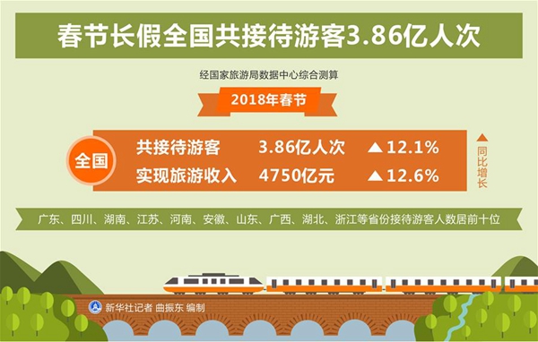 圖表:春節(jié)長假全國共接待游客3.86億人次 新華社記者 曲振東 編制