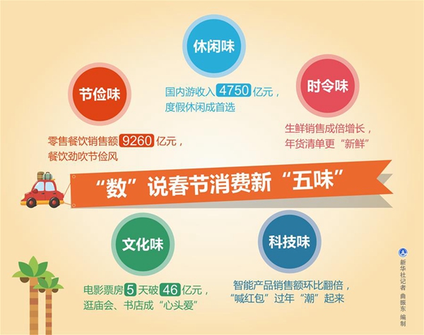 圖表:“數(shù)”說春節(jié)消費(fèi)新“五味” 新華社記者 曲振東 編制