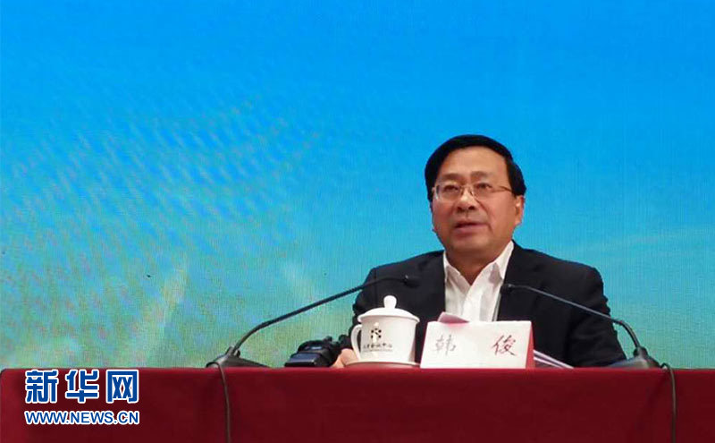 中央農(nóng)村工作領導小組辦公室主任韓俊在“2018年中國三農(nóng)發(fā)展大會”上發(fā)言。新華網(wǎng) 張明宇攝