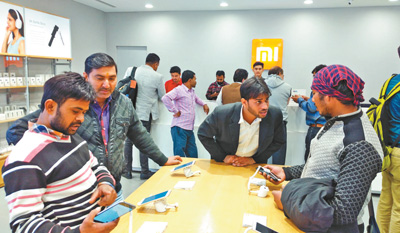 印度南德里第一家小米手機專賣店內(nèi)消費者眾多。記者 苑基榮 攝
