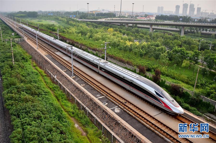 2017年8月21日,從北京南開往天津的C2001次“復(fù)興號”中國標(biāo)準(zhǔn)動(dòng)車組駛?cè)胩旖蚴袇^(qū)。自當(dāng)日起,鐵路部門擴(kuò)大“復(fù)興號”動(dòng)車組列車開行范圍,京津城際列車開行19.5對“復(fù)興號”動(dòng)車組列車。新華社發(fā)(楊寶森 攝)