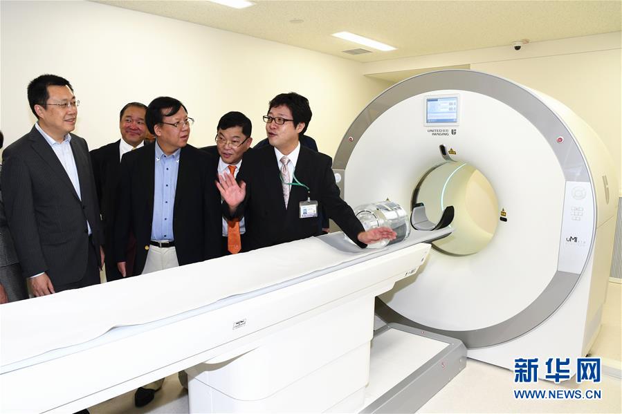 2017年8月24日,在日本名古屋,人們參觀中國的醫(yī)療設(shè)備“聯(lián)影96環(huán)PET-CT”,這是“中國智造”大型高端醫(yī)療設(shè)備首次打入日本市場。PET-CT是正電子發(fā)射計(jì)算機(jī)斷層掃描技術(shù)的英文簡稱,這種醫(yī)療設(shè)備可對人體進(jìn)行全方位掃描,達(dá)到發(fā)現(xiàn)病灶和診斷疾病的目的。新華社記者華義 攝