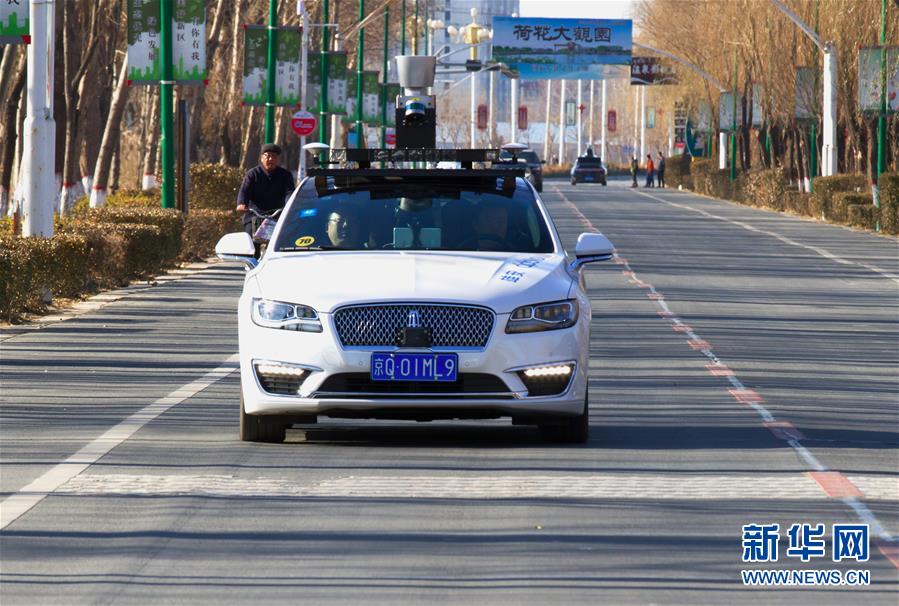 一輛百度Apollo自動(dòng)駕駛車輛在雄安新區(qū)進(jìn)行載人路測(2017年12月20日攝)。新華社記者 楊世堯 攝
