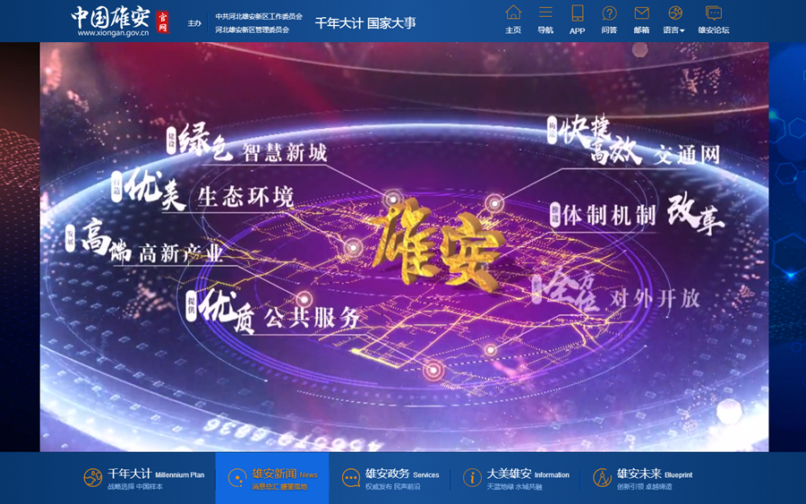 這是新華網(wǎng)承建的中國雄安官網(wǎng)首頁截圖