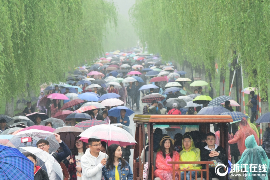 杭州:清明時(shí)節(jié)雨紛紛 西湖游客雨中游