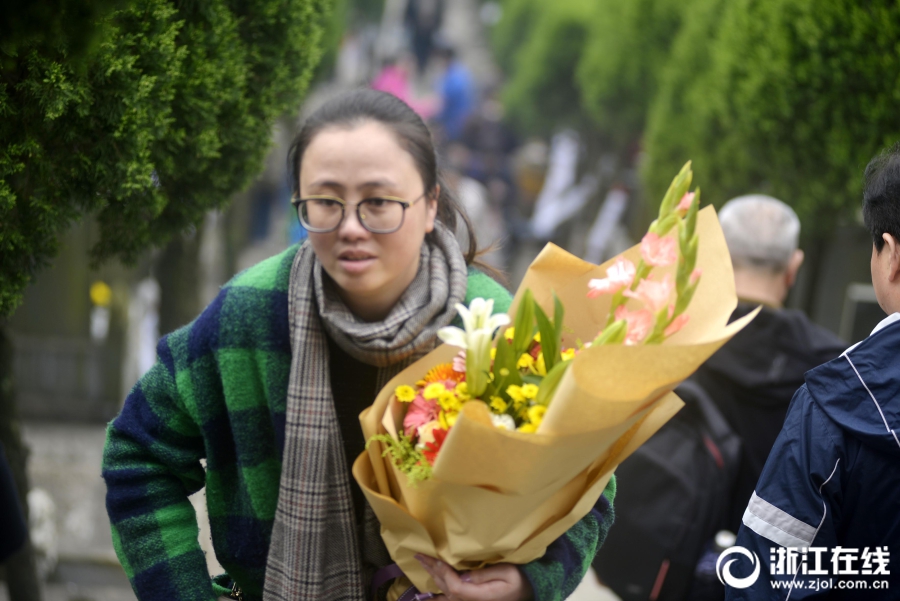 4月5日清明節(jié)上午,前往浙江省定舟山市定海區(qū)清陵掃墓人絡繹不絕,不少掃墓人用鮮花祭祀,寄托哀思懷念逝去的親人,倡導環(huán)保綠色的清明。(浙江在線拍友 胡社友 攝)