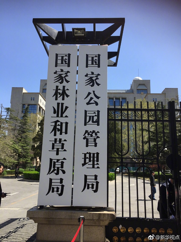 新華網(wǎng)北京4月10日電? 國家林業(yè)和草原局、國家公園管理局10日正式揭牌,由自然資源部管理,這對(duì)統(tǒng)籌山水林田湖草系統(tǒng)治理具有重要意義。(記者 侯雪靜 胡璐) ????(據(jù)新華社“新華視點(diǎn)”微博)