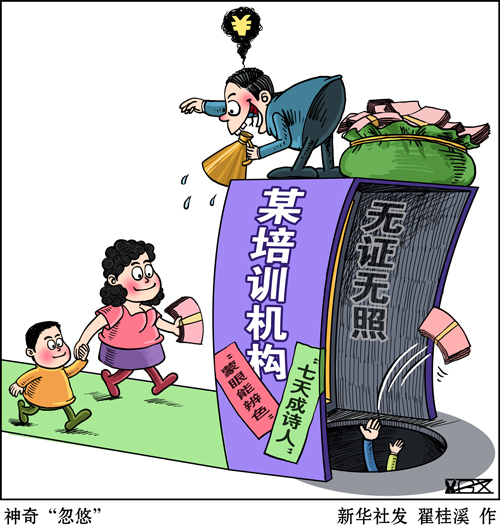 近年來(lái),功利教育觀大行其道,培訓(xùn)市場(chǎng)魚(yú)龍混雜,推波助瀾。不少家長(zhǎng)架不住廣告“忽悠”,老師“洗腦”,報(bào)班花費(fèi)成千上萬(wàn),可到頭來(lái)沒(méi)讓孩子練就“開(kāi)掛”本領(lǐng),反被部分培訓(xùn)機(jī)構(gòu)坑錢、坑娃、坑智商。種種洗腦式營(yíng)銷,消費(fèi)家長(zhǎng)們的焦慮,加劇拔苗助長(zhǎng)的功利心,違背了教育育人為本的初心。