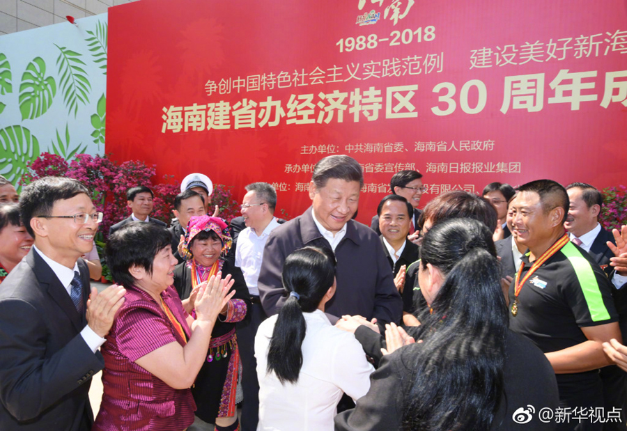 新華網(wǎng)北京4月13日電 13日上午,習(xí)近平總書記在??谑袇⒂^了海南建省辦經(jīng)濟(jì)特區(qū)30周年成就展,對30年來特別是黨的十八大以來海南經(jīng)濟(jì)社會發(fā)展成就給予肯定。他指出,貫徹黨中央精神不是喊口號,要結(jié)合當(dāng)?shù)貙嶋H、經(jīng)過深入調(diào)研形成符合黨中央精神的一系列具體舉措,并在實施中早見成效、大見成效。