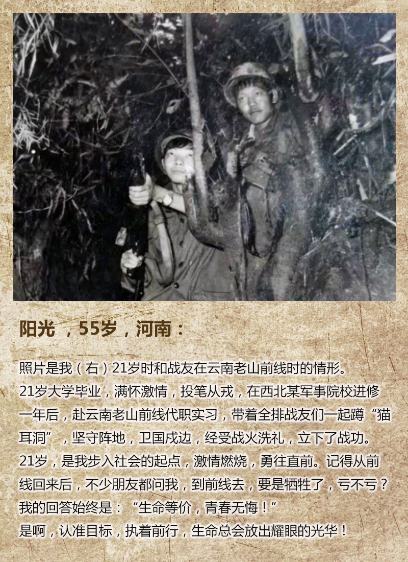 #21歲的我#【電影也拍不出來的芳華!爸媽爺奶輩的21歲原來是這樣的】21歲,你在干什么?問題一發(fā)出,不僅有大批年輕人來分享故事,就連他們的爸媽爺奶輩也坐不住了!來看看他們的21歲,綻放過怎樣的芳華?他們的21歲,奉獻(xiàn)青春保家衛(wèi)國,這是不是讓人熱血沸騰?21歲的故事,我們繼續(xù)等你分享!