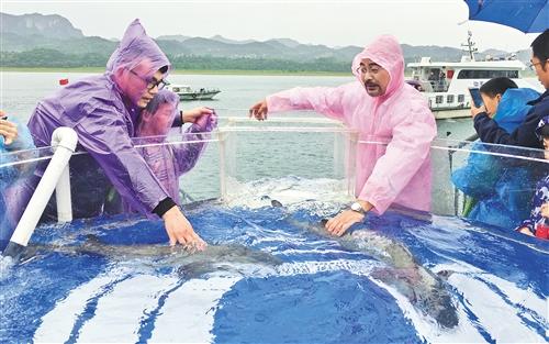 2017年長江口珍稀水生生物增殖放流活動6日在長江口中華鱘自然保護區(qū)附近水域舉行。2017-06-06 19:27:57