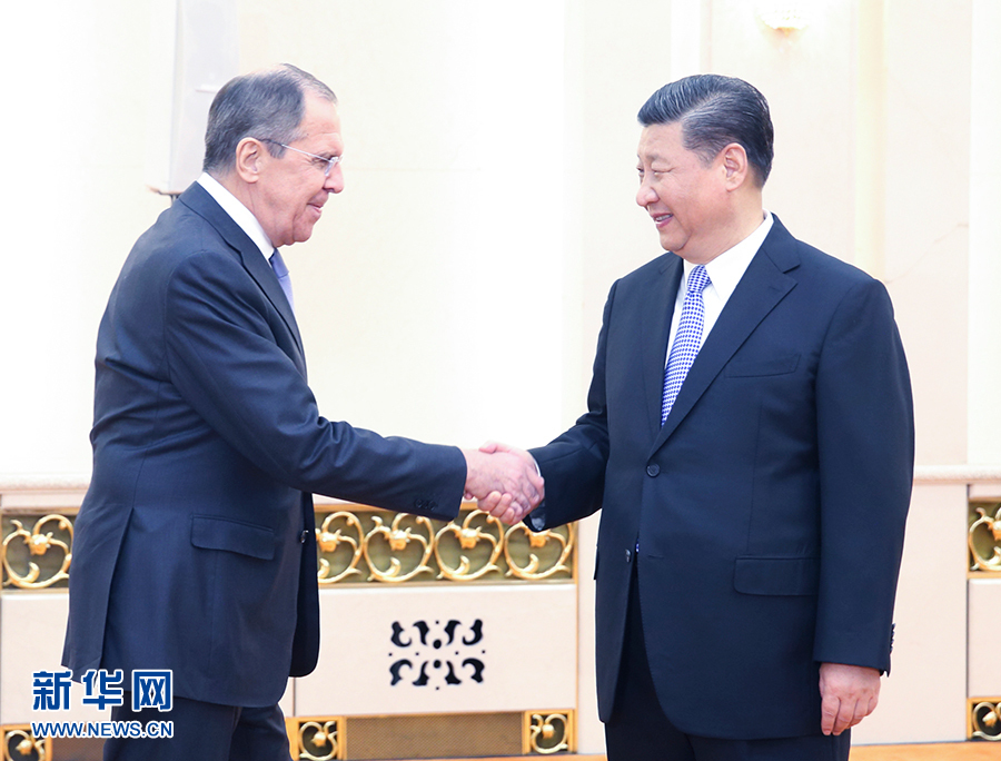 4月23日,國(guó)家主席習(xí)近平在北京人民大會(huì)堂會(huì)見(jiàn)俄羅斯外長(zhǎng)拉夫羅夫。 新華社記者 姚大偉 攝