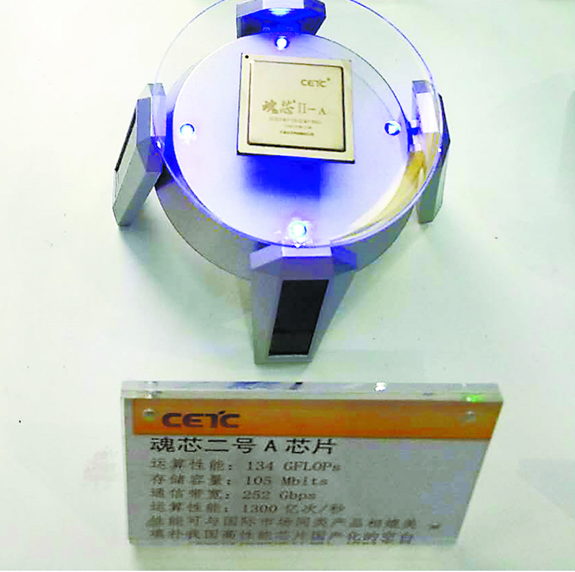 2012年,中國(guó)電科38所推出我國(guó)自主研發(fā)的首款實(shí)用型高性能浮點(diǎn)通用DSP(數(shù)字信號(hào)處理器)芯片——“魂芯一號(hào)”。 “魂芯一號(hào)”每秒能完成300億次浮點(diǎn)運(yùn)算或80億次浮點(diǎn)乘法累加運(yùn)算,可謂真正的中國(guó)“芯”、民族“魂”,其成功應(yīng)用打破了國(guó)外高性能芯片在中國(guó)的壟斷地位。就性能而言,“魂芯一號(hào)”的性能高于同期市場(chǎng)同類DSP芯片3倍至4倍,并成功應(yīng)用在我國(guó)空警-500預(yù)警機(jī)雷達(dá)等多個(gè)國(guó)防科技裝備上,讓空警-500實(shí)現(xiàn)了“小平臺(tái)、大預(yù)警、高性能、新一代”的戰(zhàn)略目標(biāo),成為我國(guó)首款廣泛應(yīng)用于國(guó)防科技裝備的高端自主數(shù)字信號(hào)處理器。