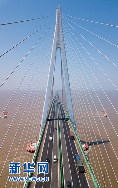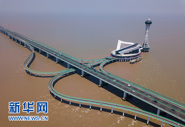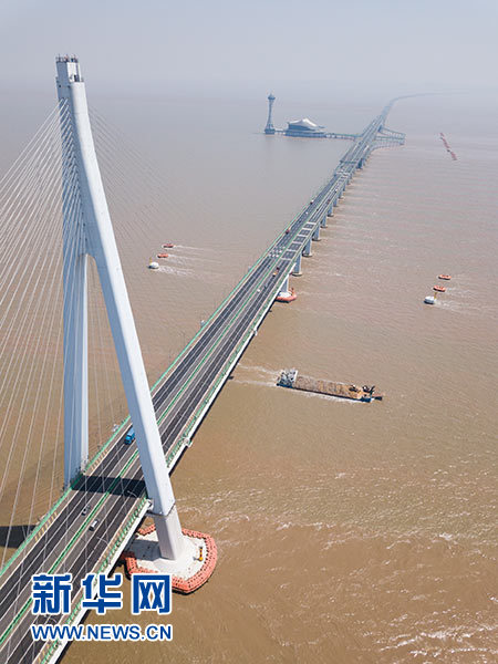杭州灣海面上,一座大橋如長(zhǎng)龍臥波。