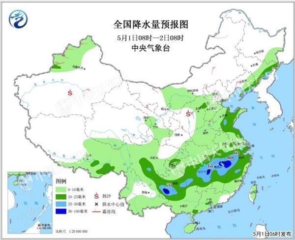 中央氣象臺預(yù)計,5月1日至3日,我國中東部自西向東將有一次較大范圍降水天氣過程,其中,東北地區(qū)東南部、黃淮東部、西南地區(qū)東部和南部、江漢南部、江南大部、華南中西部等地的部分地區(qū)有中到大雨,局地暴雨或大暴雨,上述局部地區(qū)將伴有短時強降水、雷暴大風等強對流天氣。