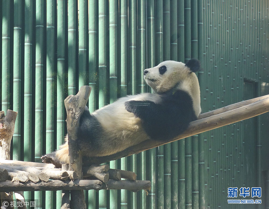 5月2日,在動(dòng)物園內(nèi),熊貓曬著太陽(yáng),時(shí)不時(shí)伸個(gè)懶腰,翻個(gè)身,笨拙的動(dòng)作盡顯萌態(tài)。(圖片來(lái)源:視覺(jué)中國(guó))