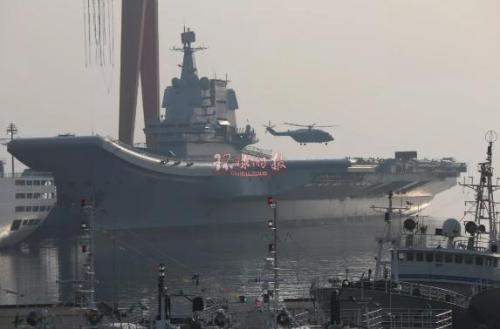在剛過去的周末,國產(chǎn)航母再度成為國內(nèi)網(wǎng)絡(luò)以及周邊地區(qū)的熱點話題。5日早晨,一架直-18改進型直升機降落在停泊于大連造船廠碼頭的國產(chǎn)航母甲板上,數(shù)分鐘后起飛離開。這是國產(chǎn)航母首次進行直升機起降測試,此前一天,遼寧海事局在官網(wǎng)上貼出禁航公告,宣布由于軍事任務(wù)的緣故,渤海海峽黃海北部自當日下午4點開始,禁航一周。多方猜測,國產(chǎn)航母海試在即。