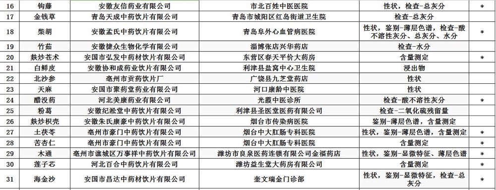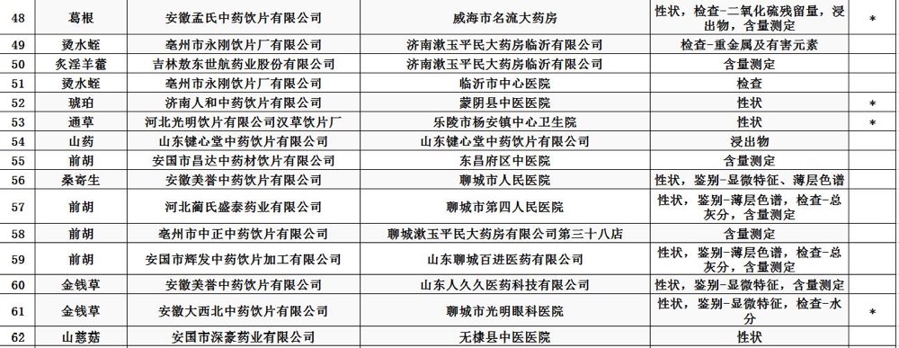 經(jīng)濱州市食品藥品檢驗檢測中心等14家藥品檢驗機構(gòu)檢驗,標(biāo)示為河北凱諾制藥有限公司等2家企業(yè)生產(chǎn)的2批次藥品,標(biāo)示為金芍堂中藥飲片有限公司等47家企業(yè)生產(chǎn)的70批次中藥飲片不合格。