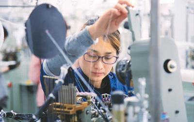 2018年湖北省十堰市鄖陽區(qū)計劃引進7000余臺智能織襪機,在18個鄉(xiāng)鎮(zhèn)建設“智能織襪車間”。圖為村民用智能織襪機織襪子。曹忠宏 孟 江攝(人民圖片)
