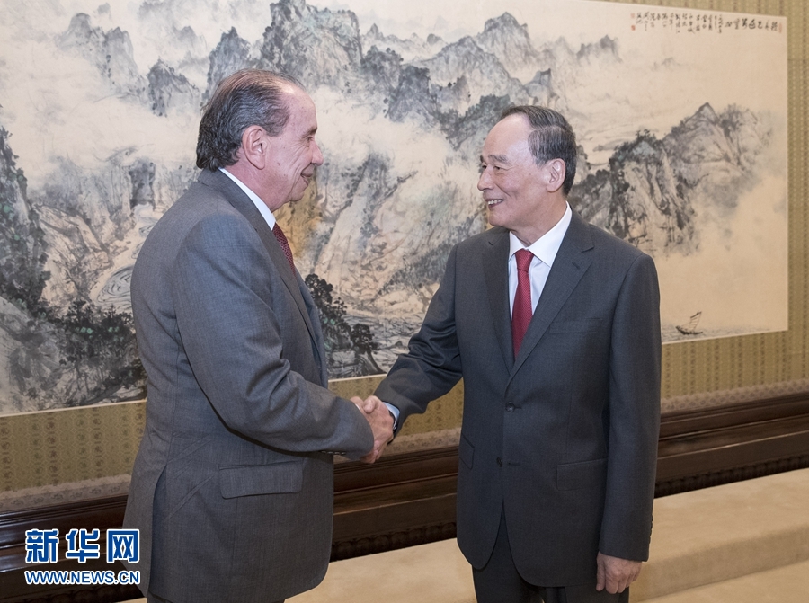 5月14日,國(guó)家副主席王岐山在北京中南海會(huì)見(jiàn)巴西外長(zhǎng)努內(nèi)斯。新華社記者 王曄 攝