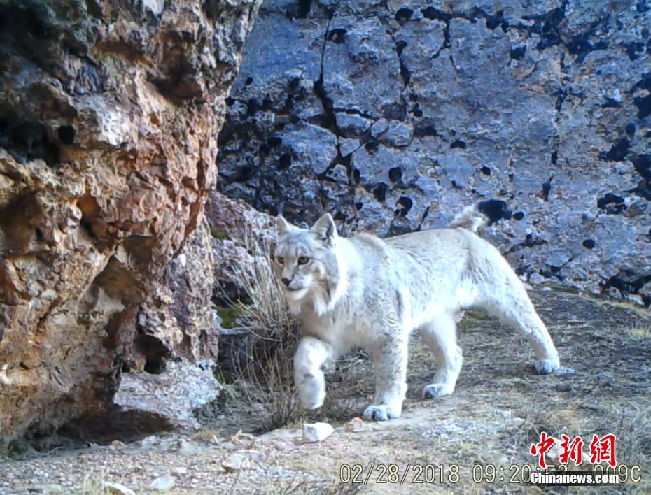紅外相機(jī)拍攝到的猞猁。文/趙朗 曾嘉 監(jiān)測(cè)畫(huà)面