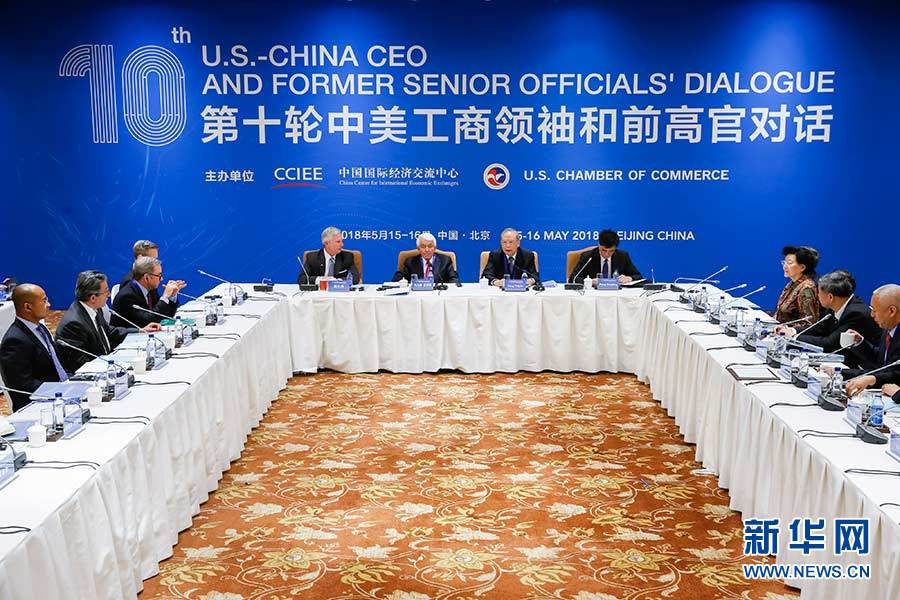 5月15日,第十輪中美工商領(lǐng)袖和前高官對(duì)話開(kāi)幕式在北京舉行。新華社記者 沈伯韓 攝