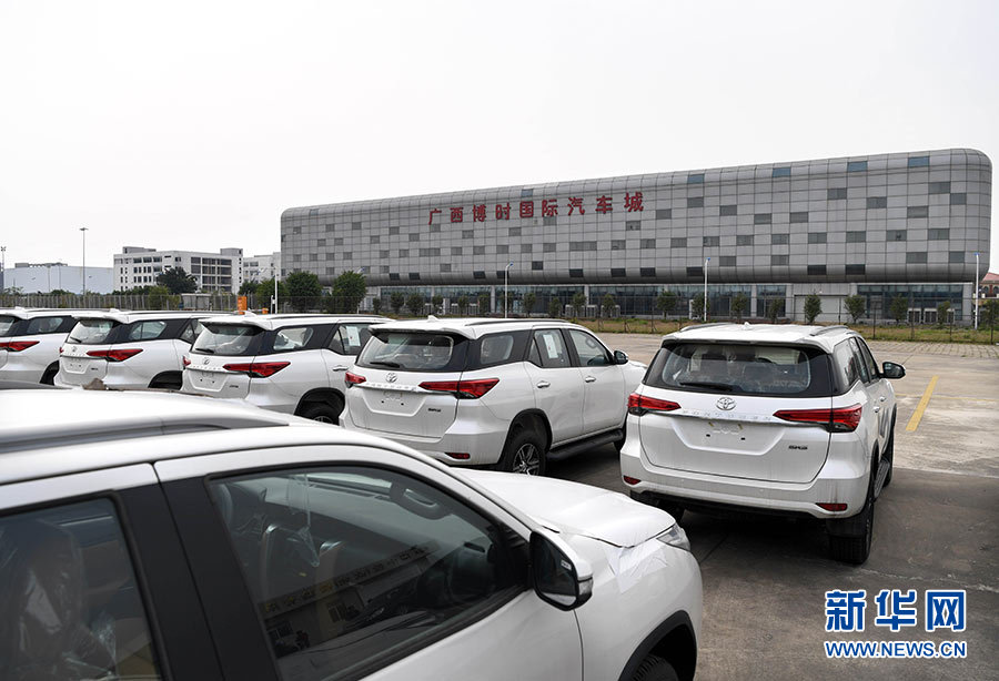 停放在廣西欽州保稅港區(qū)國(guó)際汽車城外的到岸進(jìn)口整車(2017年4月13日攝)。新華社記者 申宏 攝