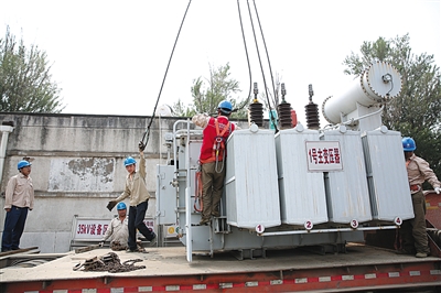 新機場跑道規(guī)劃范圍內的老變電站將于本月拆除。昨日,南各莊變電站內主變壓器拆除后吊運,宣告該變電站正式退役。