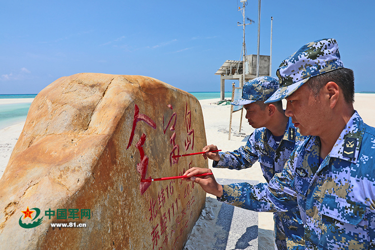 在全富島,關(guān)建軍和三沙市副市長陳儒茂帶頭描摹主權(quán)碑上“中國”兩個大字。“每描一筆,都感到神圣無比,建設(shè)強(qiáng)大穩(wěn)固的現(xiàn)代邊??辗?,共同守護(hù)好我們的祖宗海,離不開軍地協(xié)力。扛起這一如山使命,我們責(zé)無旁貸!”關(guān)建軍的話語擲地有聲。特約記者 薛成清 通訊員 盆世舟 潘新新