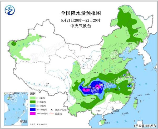 今明天,我國南方地區(qū)再遭強降雨。中央氣象臺預計,西南地區(qū)東部有一次強降雨過程,四川、重慶、湖北西南部、貴州北部等地有暴雨,局地大暴雨并伴有短時強降水、雷暴大風等強對流天氣。過程最強時段為21日夜間至22日白天。為此,中央氣象臺5月21日06時繼續(xù)發(fā)布暴雨藍色預警。