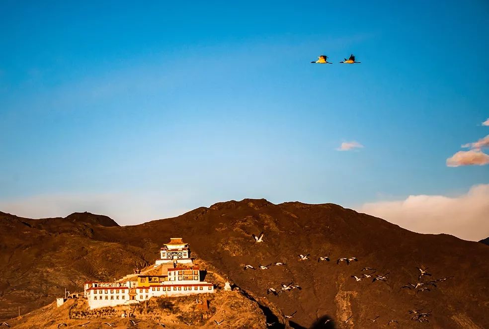 西藏日喀則仲巴縣,成群的大雁在這高原湖泊中棲息。