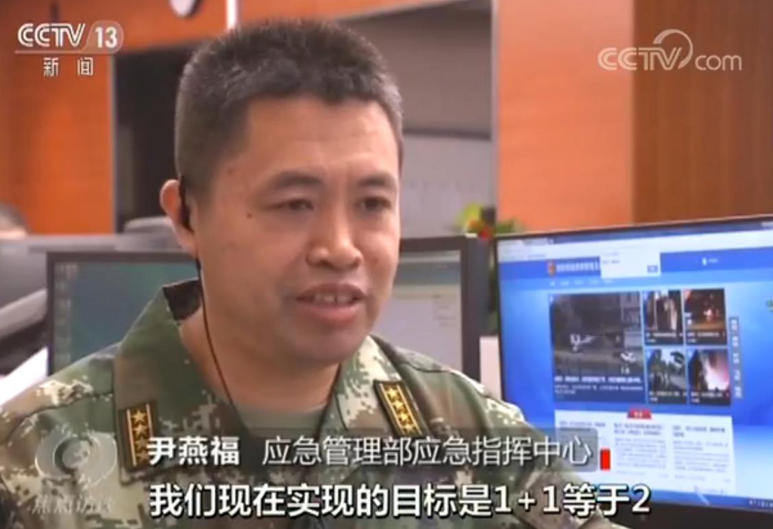應(yīng)急管理部應(yīng)急指揮中心尹燕福表示:“短短一個月的時間,我們現(xiàn)在實現(xiàn)的目標是1+1等于2,已經(jīng)形成了一個合力,形成了一個拳頭,形成了一個整體。下一步會有這樣一個大的系統(tǒng),我們正在規(guī)劃,正在組織研究論證國家的應(yīng)急管理信息網(wǎng)絡(luò)體系,最后整個信息的融合,會形成一種物理性到化學(xué)性的反應(yīng),就是1+1大于2的目標?!?/p>