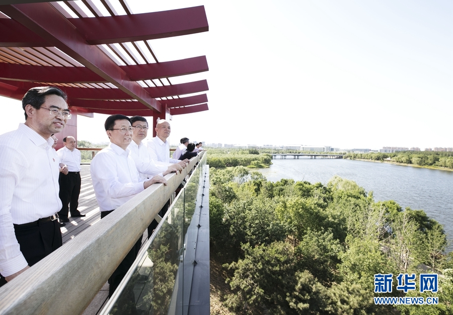 5月28日,中共中央政治局常委、國務(wù)院副總理韓正在北京市通州區(qū)調(diào)研北京城市副中心規(guī)劃建設(shè)工作。這是韓正在大運(yùn)河森林公園察看大運(yùn)河沿岸生態(tài)環(huán)境治理情況。新華社記者 王曄 攝