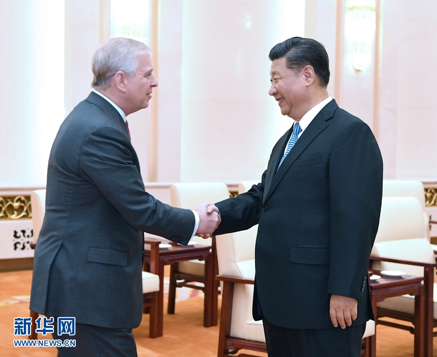 5月29日,國家主席習近平在北京人民大會堂會見英國約克公爵安德魯王子。 新華社記者 饒愛民 攝