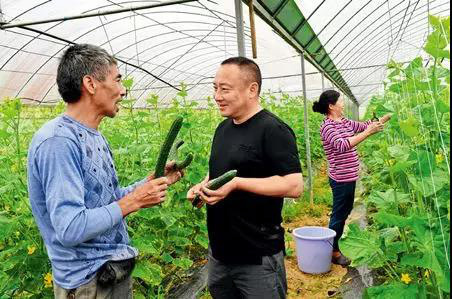 福建省武夷山市上梅鄉(xiāng)首陽村黨支部書記、村主任左承基(中)在農(nóng)民創(chuàng)業(yè)園的大棚內(nèi)了解蔬菜種植情況 張國俊攝/本刊