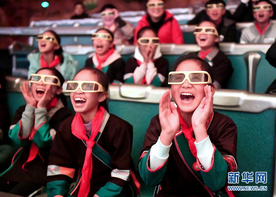 在廣西柳州市景行小學(xué)柳東校區(qū),來(lái)自三江侗族自治縣和融安縣大山里的留守兒童觀(guān)看3D動(dòng)畫(huà)片(1月4日攝)。當(dāng)日,柳州市舉行關(guān)愛(ài)留守兒童城市圓夢(mèng)活動(dòng)。新華社發(fā)(黎寒池 攝)