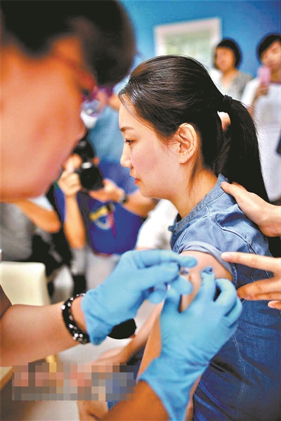 史佳雨在接種HPV9價(jià)疫苗。(圖片來源:海南日?qǐng)?bào))