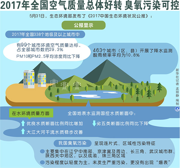 圖表:2017年全國空氣質量總體好轉 臭氧污染可控 新華社記者 孟麗靜 編制