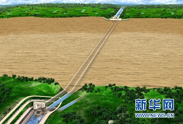 穿黃工程位于河南省鄭州市黃河上游約30千米處,是南水北調(diào)中線上標志性、控制性工程?!按S”顧名思義就是“穿越黃河”,來自丹江口水庫的長江水自渠首出,一路自流向北,而黃河成為阻礙南水北去的天然屏障。為解決這一問題,在鄭州花園口西黃河河床底部40米深處,開鑿兩條4250米長的隧道,北上的長江水通過兩條穿黃隧洞與黃河立體交叉,形成“江水不犯河水”之勢俯沖而下,穿越萬古黃河。