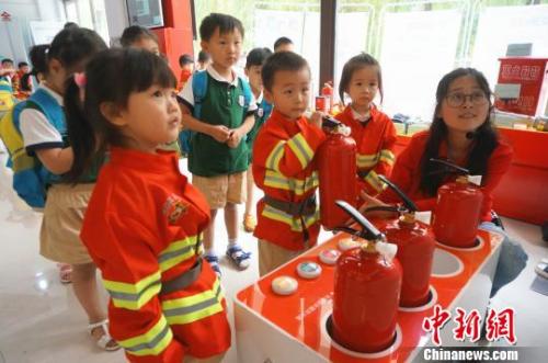 資料圖:兒童節(jié)孩子們穿上迷你消防服,體驗?zāi)M滅火?!№n章云 攝