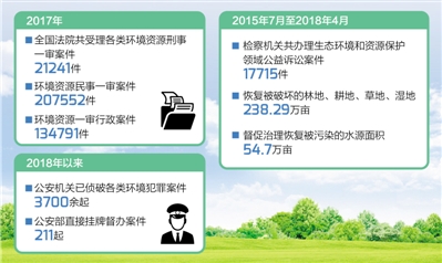 6月5日,最高法、最高檢、公安部公布了近年來打擊污染環(huán)境違法犯罪相關情況。2017年,全國法院共受理各類環(huán)境資源刑事一審案件21241件,審結20602件;2015年7月至2018年4月,全國檢察機關共辦理生態(tài)環(huán)境和資源保護領域公益訴訟案件17715件;今年以來,全國公安機關已偵破各類環(huán)境犯罪案件3700余起,抓獲犯罪嫌疑人5730余名,公安部直接掛牌督辦案件211起。
