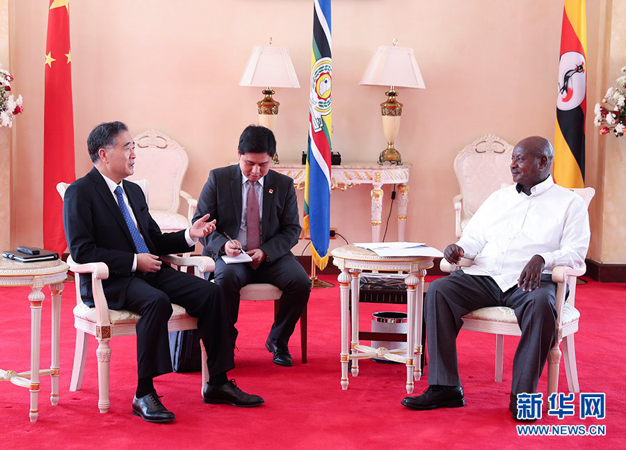 6月13日至16日,應(yīng)烏干達(dá)政府邀請(qǐng),全國政協(xié)主席汪洋對(duì)烏干達(dá)進(jìn)行正式友好訪問。這是6月15日,烏干達(dá)總統(tǒng)穆塞韋尼會(huì)見汪洋。新華社記者 龐興雷 攝